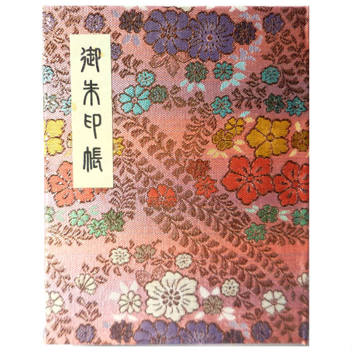 御朱印帳(朱印帳)カバー付き・四季彩々花柄(pink)・西陣織金襴・上製本仕上げ(60ページ)