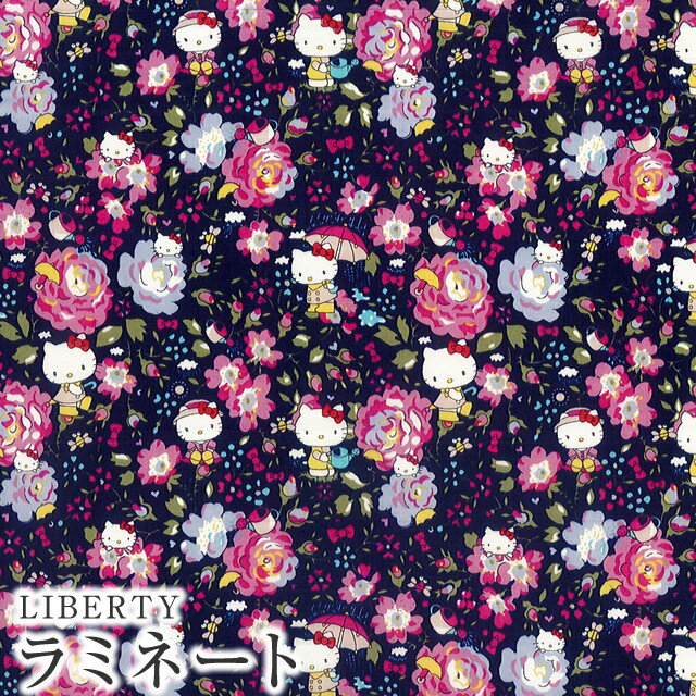 ハローキティ×リバティアートファブリックつや消しラミネート(ビニールコーティング生地)<Felicite Hello Kitty>(フェリシテ ハローキティ)【ネイビー】LAMI-DC27904-J12B