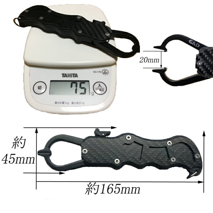 商品詳細 素材 カーボン製とガラス繊維製 内容 長さ:約165mm 重量:cabon75g/glass fibers109g 最大開き幅:約20mm 耐荷重:約20kg 商品説明 フィッシュグリップ 釣り ルアー フィッシュグスケール 父の日 プレゼント ギフト 2018年新登場、フルモデルチェンジ、基本性能の劇的アップだけでなく流れコンセプトにより操作性の向上も果たした新しいトレンドリーディングモデル誕生です!!! 確実にグリップし、安全でスムーズに作業できます。