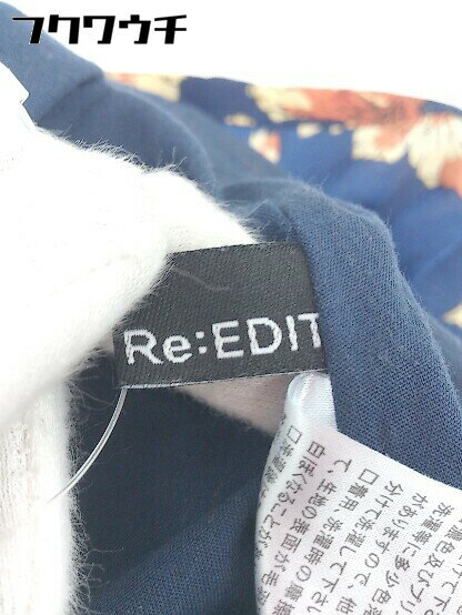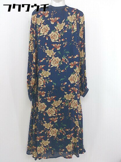 ◇ Re EDIT リエディ 花柄 Vネック 長袖 ロング ワンピース サイズL ネイビー マルチ レディース 【中古】