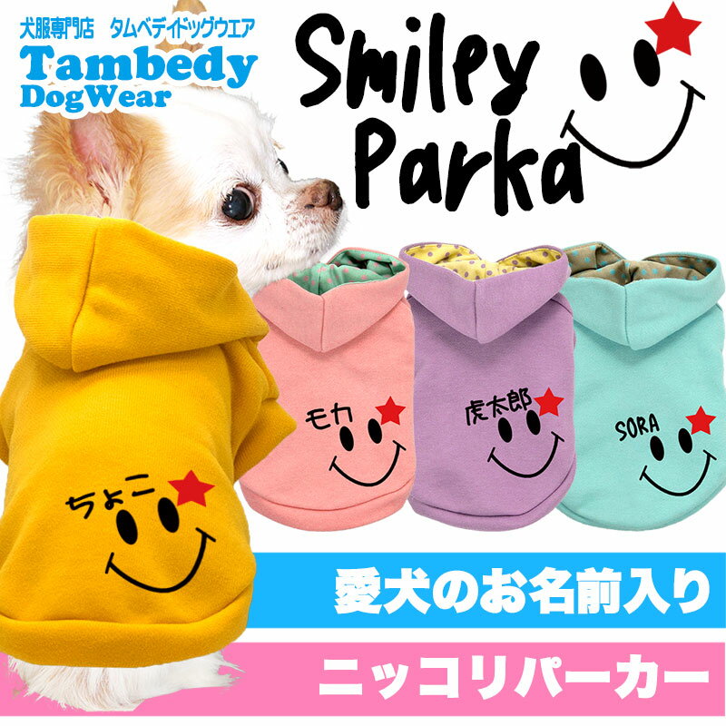 \9/3 23:59まで★ポイント10倍/【犬 服 犬の服 ドッグウェア 名入れ】愛犬のお名前入り スマイリー パーカー【スマイル ニコちゃん ぺット 室内 トイプードル チワワ ダックス 服 キュート パピヨン】【202103】