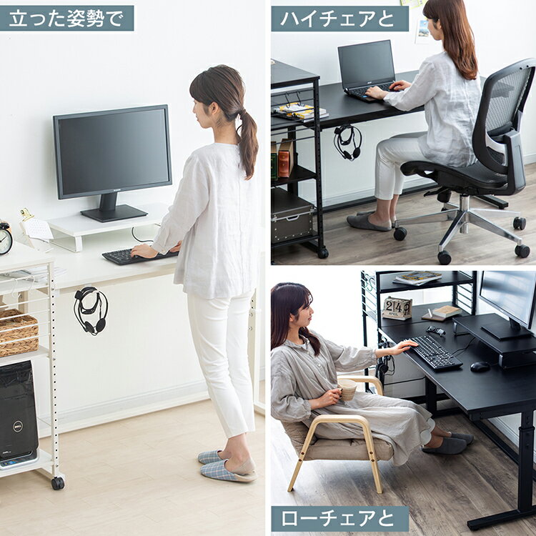 POINT1 自分好みにカスタマイズ別売りのデスクサイドワゴンやモニター台を組み合わせることで用途やお部屋にあった使い方が出来ます。