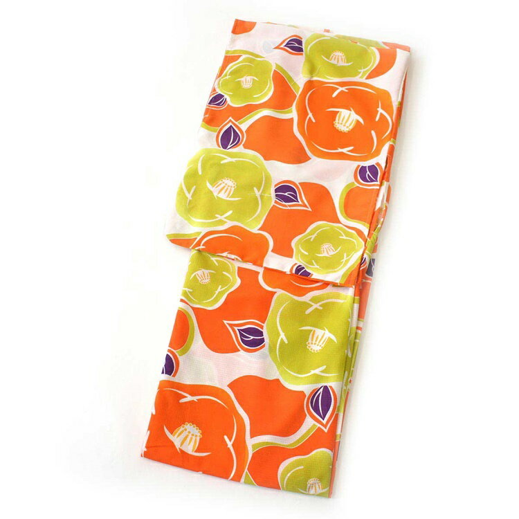 浴衣 レディース 単品 変わり織浴衣 ポリエステル (椿 オレンジ 黄緑)フリーサイズ ゆかた レトロ レトロモダン 150cm 160cm 女性 浴衣単品 kyt