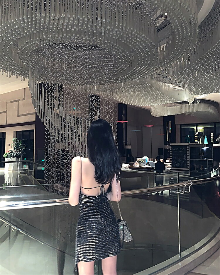 ナイトクラブ スプリット ミニスカート 高見え 上品 背中透け感キャミワンピ[K](T)