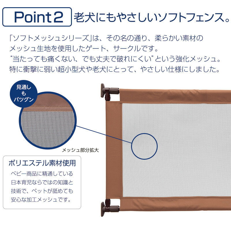 ●高さ50cmでワンちゃんは"とおせんぼ"して、人はまたぎやすい! ●ペット用のメッシュ生地はひっかきに強く見通しよくなっています。