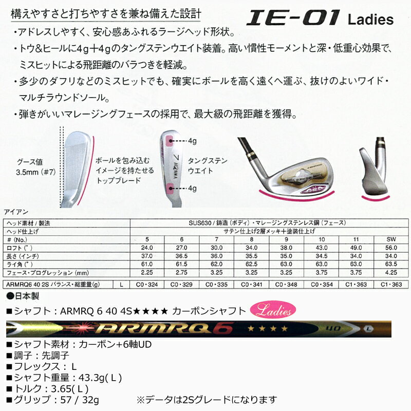 本間ゴルフ(ホンマ/HONMA) ベレスIE-01 レディース アイアン8本組(#5-#10.11.SW)アーマック6 40 4S★★★★カーボンシャフト